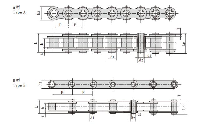 不銹鋼雙節(jié)距加長軸輸送鏈