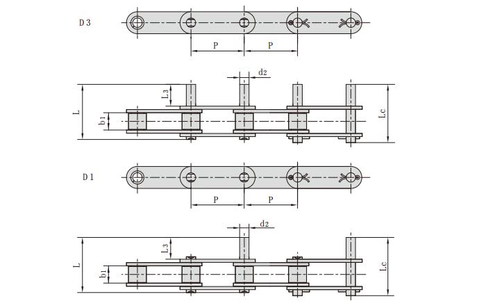 不銹鋼雙節(jié)距加長軸輸送鏈