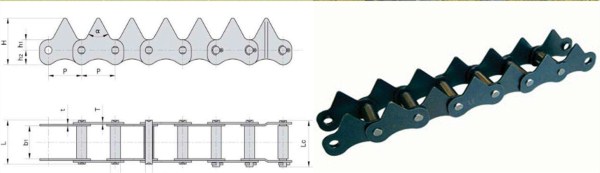 夾持鏈鏈板上頂齒的夾角是重要的參數,它與鏈條的工作性能有很大的關系。使用時,莖稈能否均勻地同輸送鏈同步前進,并且使相鄰鏈板齒側間具有的空間盡可能的大,這將取決于頂齒間夾角的數值。這是因為頂齒的夾角與莖稈空間和夾持力的大小有關的緣故。頂齒的夾角要根據不同收割機的實際使用要求來確定,因此標準中沒有規定出該夾角數值,一般常用的夾角數值有70°、90°、60°和75°等,而現在常用的鏈板外形型式和尺寸要求在JB/T 8883中已有規定。目前在使用中的農業機械用夾持輸送鏈(特別是一些內節內寬尺寸很大的夾持鏈),還有采用帶翻孔結構的內鏈板,內鏈板板孔翻邊是將套筒和內鏈板做成了一體,鏈條結構上省去了套筒這一零件,這樣結構的好處是不存在鏈板與套筒間的聯接牢固度問題,但為了保證鏈條的整體牢固度,必須保證外鏈節上銷軸鉚合的質量。但是帶翻孔結構的內鏈板一般只能采用低碳結構鋼制造,這種鏈板的抗拉強度勢必會比中碳結構鋼制造的內鏈板(一般不帶翻孔結構)要低一些,這樣就會降低整鏈的抗拉性能。所以,越來越多的收割機新機型所用夾持鏈條內鏈板都趨于采用不翻孔結構,而采用帶套筒的夾持鏈,使鏈條的穩定性更好、強度更高。由于翻孔結構夾持鏈條目前市場上用量仍舊比較大,所以JB/T 8883- 201X 中仍保留了翻孔鏈板結構的鏈條。